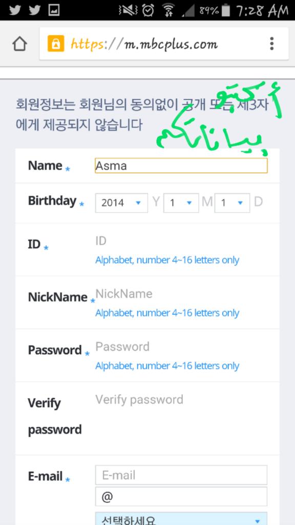 ونفس الى قلت لكم قبل تختارون "مسجل اجنبي" وتحطون صح عند الخانتين وتضغطون تحت! بعدين راح تجيكم صفحة البيانات! اكتبوها!
